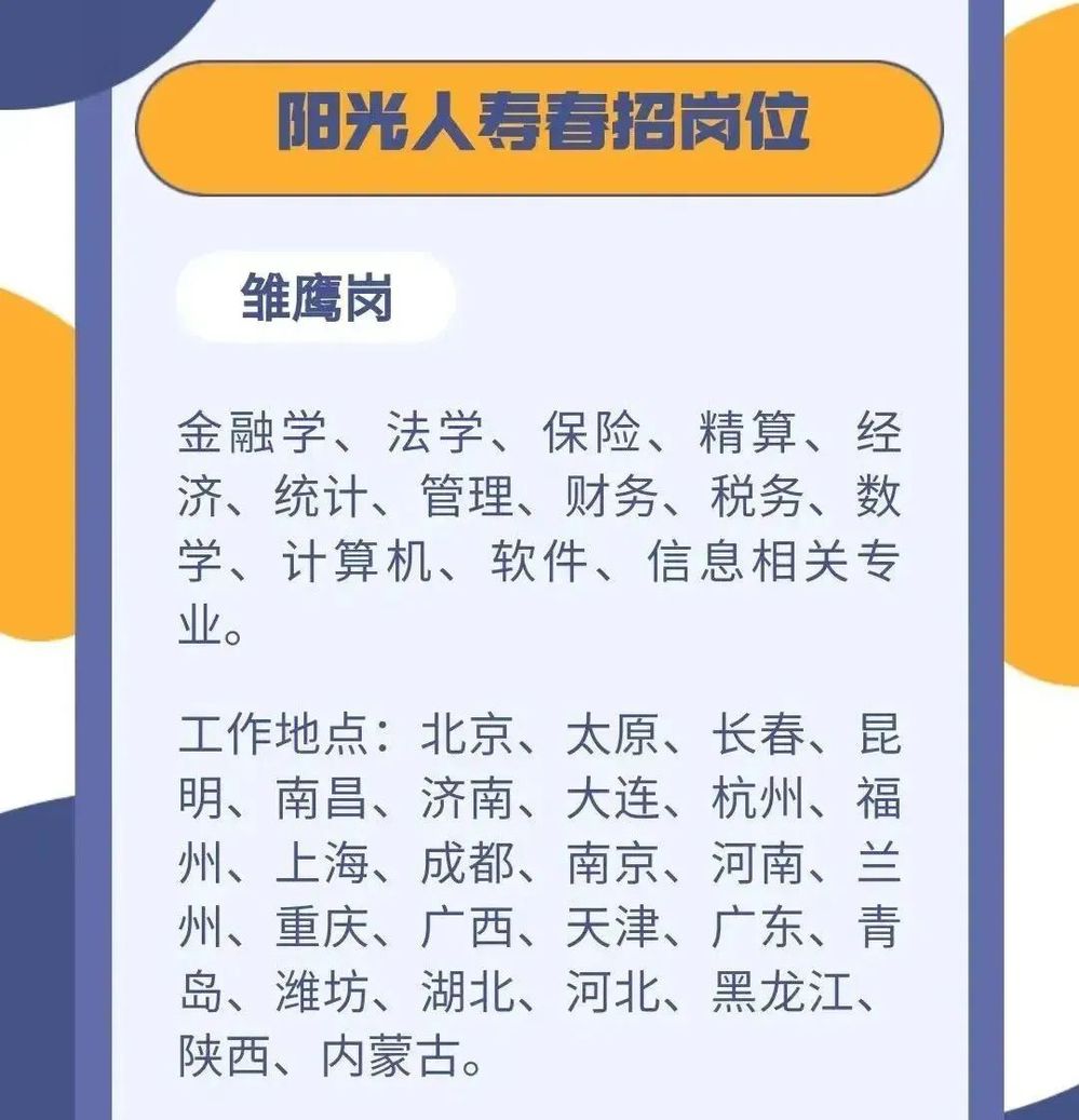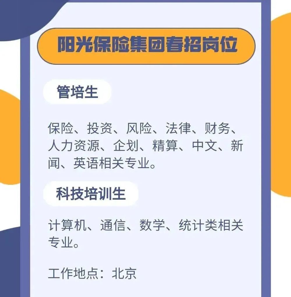 阳光保险2022春季招聘