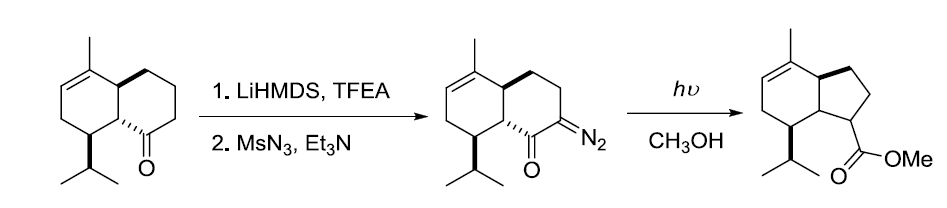 烯酮和烯烃进行[2 + 2]-光化学环加成后,进行反-羟醛缩合得到1,5-二酮的反应。