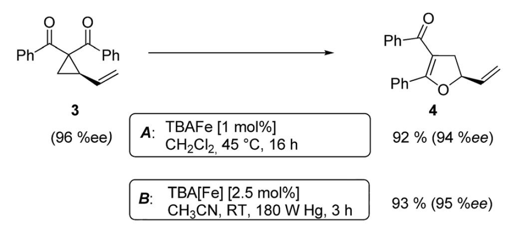 在自由基催化下,烯烃或炔烃和烯基环丙烷反应得到烯基环戊烷或烯基环戊烯的反应。