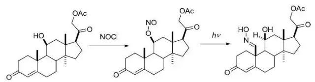 光解亚硝酸酯得到δ-肟醇的反应。