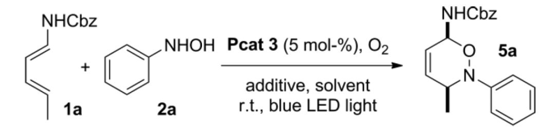 光照条件下,Ru(bpy)3Cl2作为氧化还原催化剂,将羟胺氧化为亚硝基化合物,接着进行,亚硝基-Diels–Alder反应。