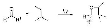 光诱导下羰基化合物和烯烃进行电环化得到多取代的氧杂环丁烷的反应。