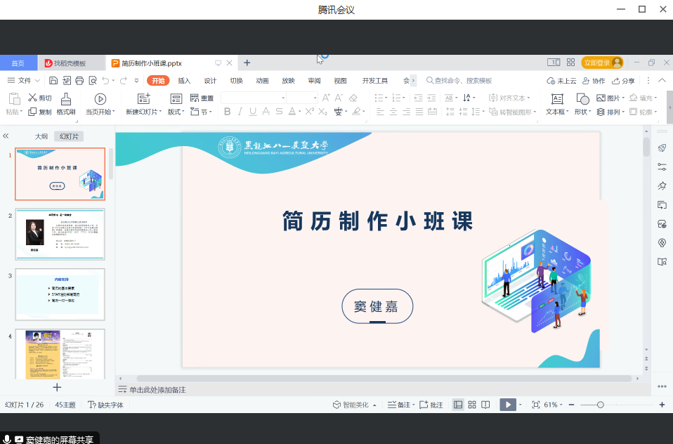 为进一步提升同学们的简历制作能力,更好的在简历设计大赛中展现个人风采,同时为广大同学毕业求职打好必备的技能基础,9月14日,我院邀请招生就业处就业指导教师窦健嘉为学院参赛选手进行了简历大赛赛前培训。