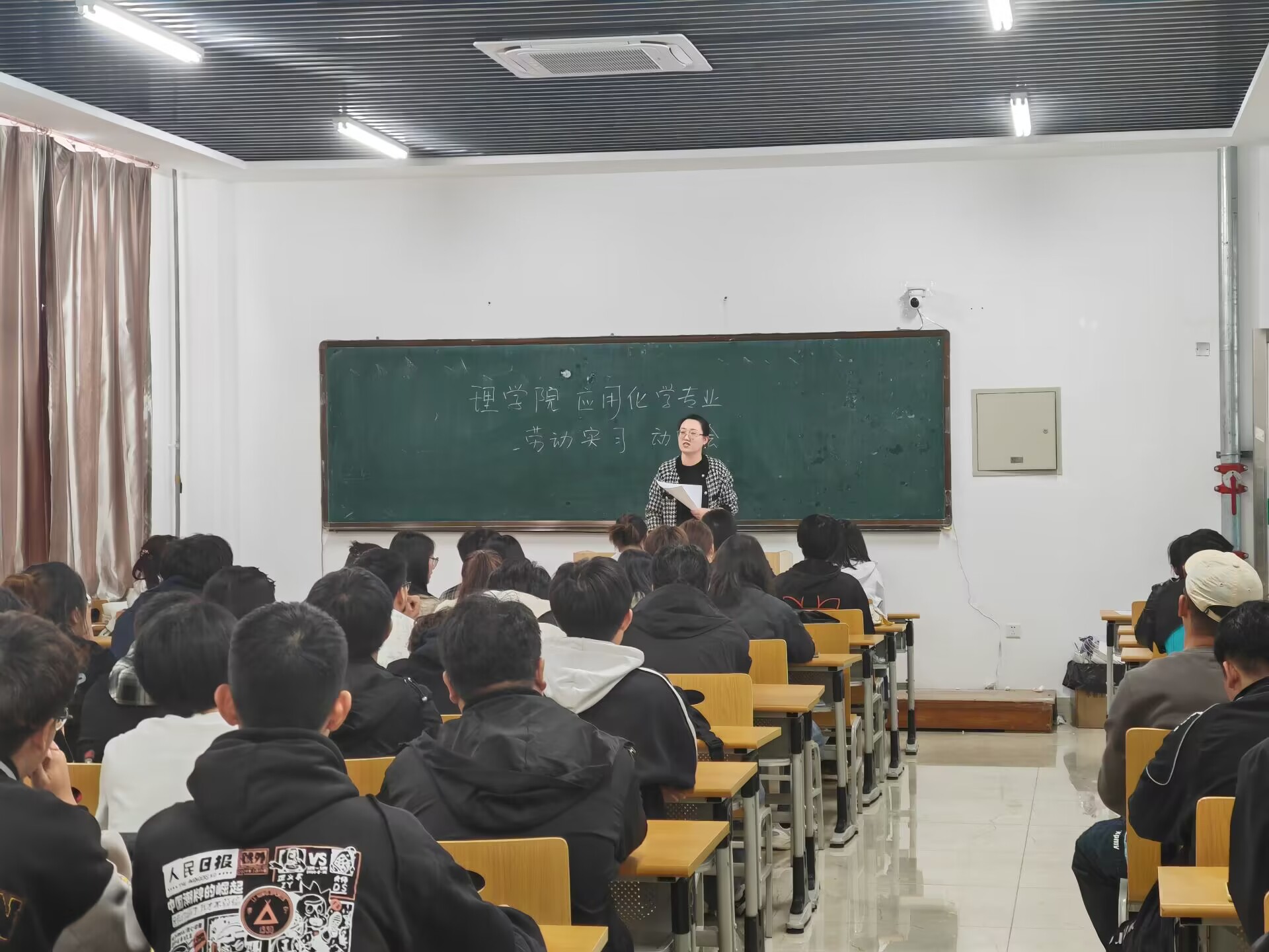 为促进应化专业应用型人才培养,扎实推进21级应化专业劳动实习工作顺利开展,10月18日下午,yl6809永利官网在实验楼601教室召开了2021级应化专业劳动实习动员大会。会议由丁冬雪老师主持,yl6809永利官网副院长于晓秋老师、化学实验中心主任王亚飞老师、应用化学系主任张成林老师、5位实习指导教师以及21级应化专业全体同学参加了会议。