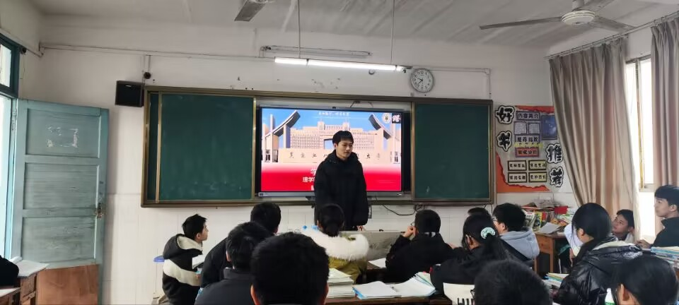 2023年国家奖学金获得者曹晶同学回到家乡四川省广安市武胜县万隆初级中学结合自身经验为学生介绍国家学生资助政策,并分享自己的成长历程,鼓励同学们要勇于尝试新事物,抓住每一个机会,不断提升自己。在此次经验分享中,充分发挥了优秀学子的示范引领作用和国家奖学金政策的社会效应。