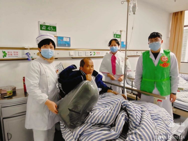 国家助学金获得者刘嘉俊同学加入新余市人民医院志愿服务队,慰问大病职工和困难患者,鼓励他们保持良好心态,积极治疗,早日康复。