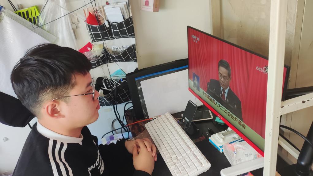 辅导员陈传宇:通过观看两会直播,让我更加深刻地感受到在以习近平同志为核心的党中央坚强领导下,我国向全面建设社会主义现代化国家迈出了坚实步伐,更增强了青年迎着春风,乘势而上的自信。观看两会开幕会对于团学工作具有重大的指导意义,要将两会报告与具体工作联系起来,向着目标不断奋进。