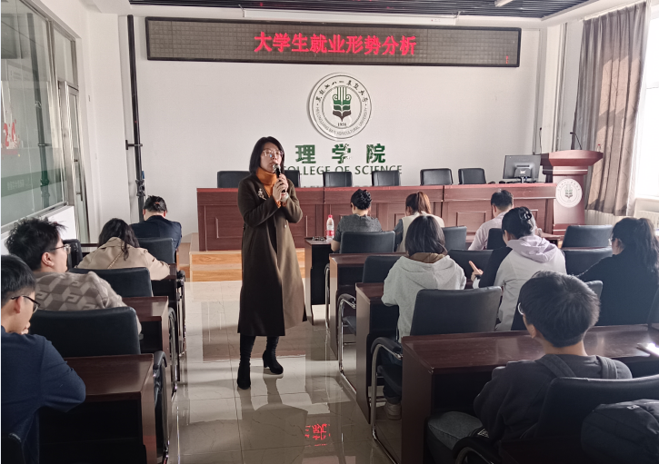 随后,针对大学生就业市场的现状与挑战,王蕾老师结合具体数据与案例,深度剖析了不同行业、岗位的就业需求变化、薪资水平走势以及人才供需矛盾等问题,使同学们对当前就业形势有了直观而深入的理解。