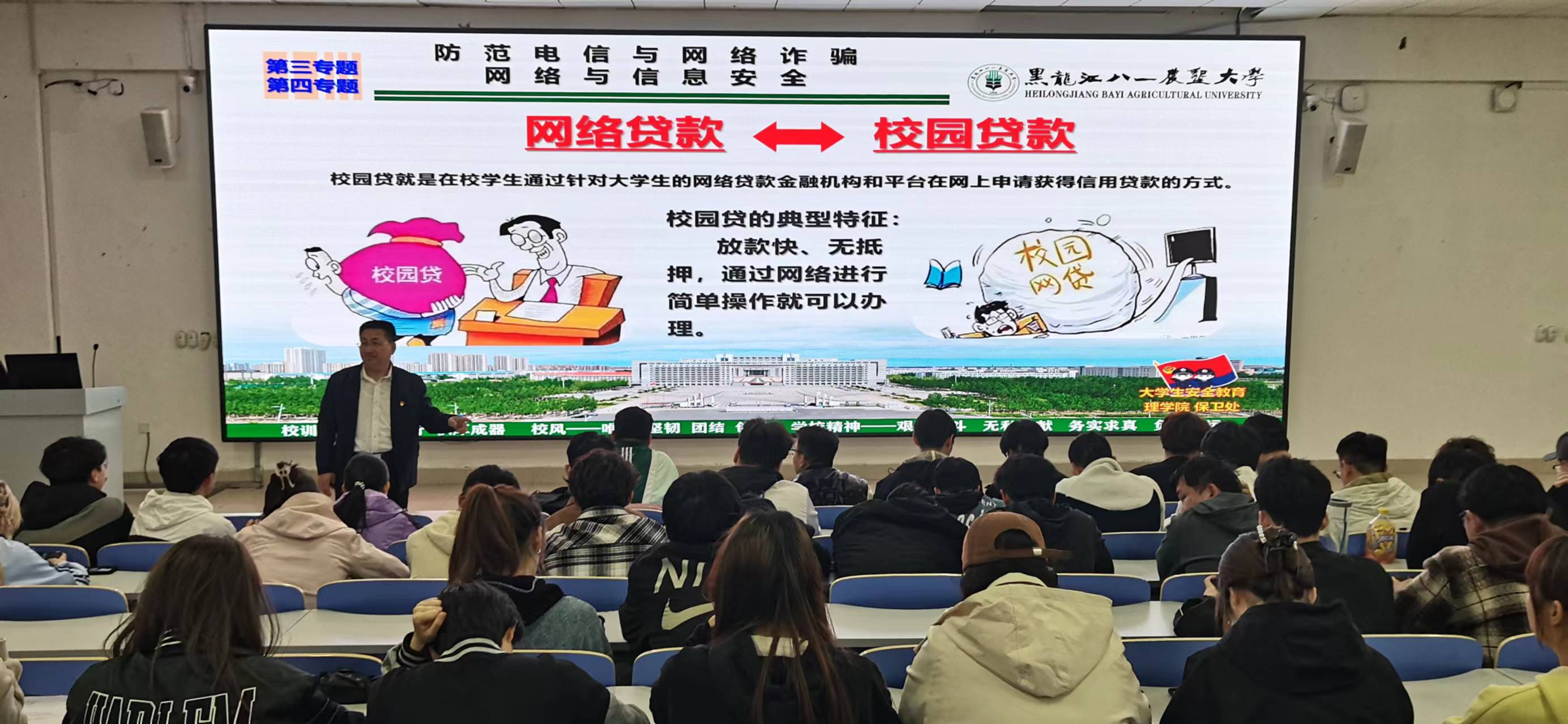 会上,戴老师从国家安全、人身与财产安全、防范电信与网络诈骗、网络与信息安全、交通出行安全、消防安全、实验室安全等方面内容,结合学生日常学习及生活,向大家讲述安全的重要性,并分享案例,提醒同学们要从自身做起,树立安全意识,提升自身安全素养。