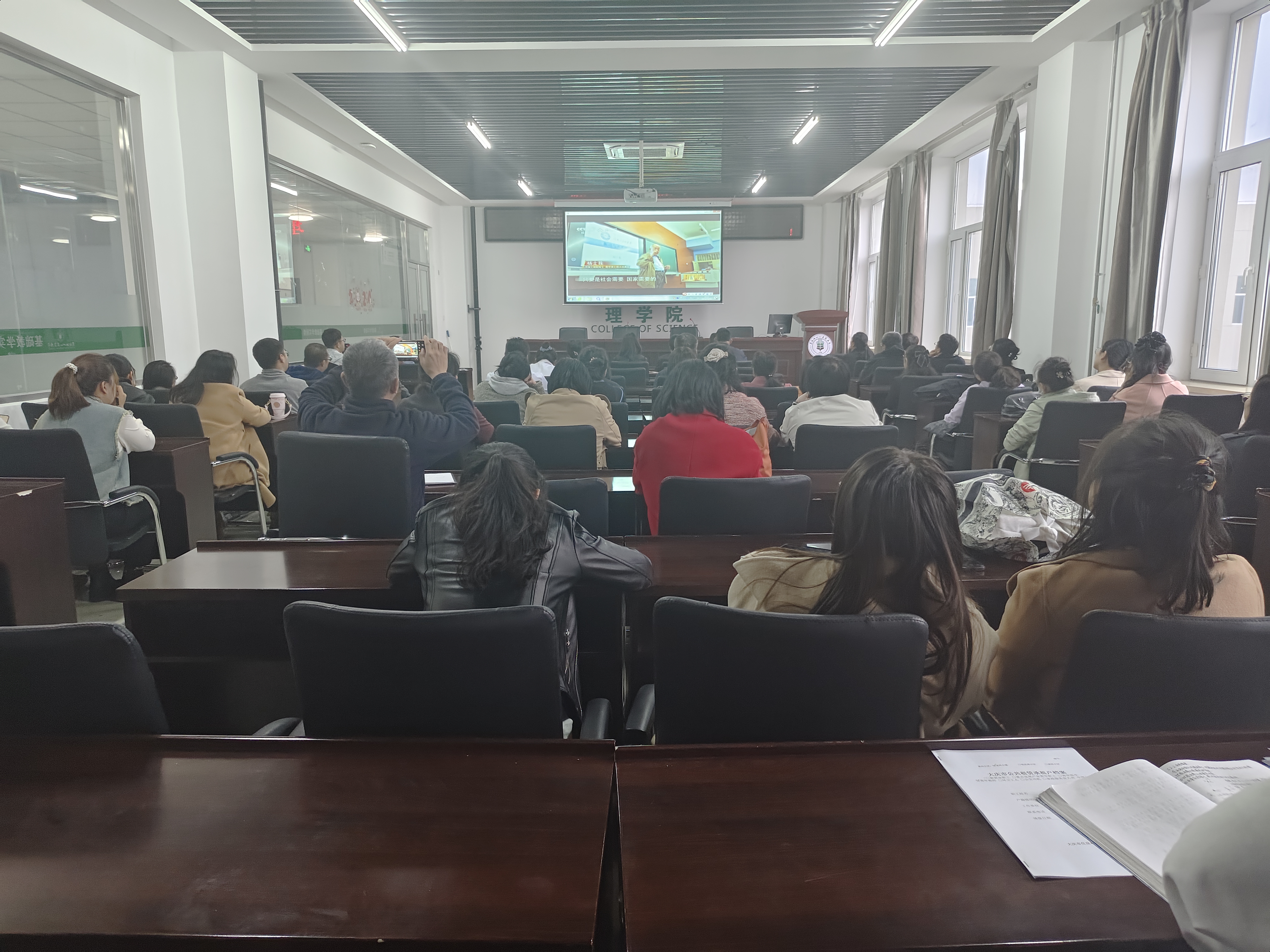 2024年10月16日下午,yl6809永利官网组织全体教职工共同观看了向“时代楷模”杨士莪同志学习的视频,共上题为“青山不墨 兴安如歌”的党的创新理论学习教育党课。此次活动旨在进一步加强教职工的思想政治教育,提升党员理论素养,激发全体教师的爱国热情和工作动力。