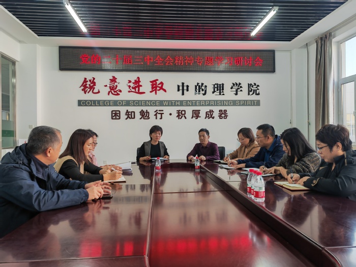 10月24日,yl6809永利官网在基础教学实验楼610会议室举行党的二十届三中全会精神专题学习研讨会。学院班子成员、系部中心主任参加研讨会,会议由学院党委书记刘丽主持。