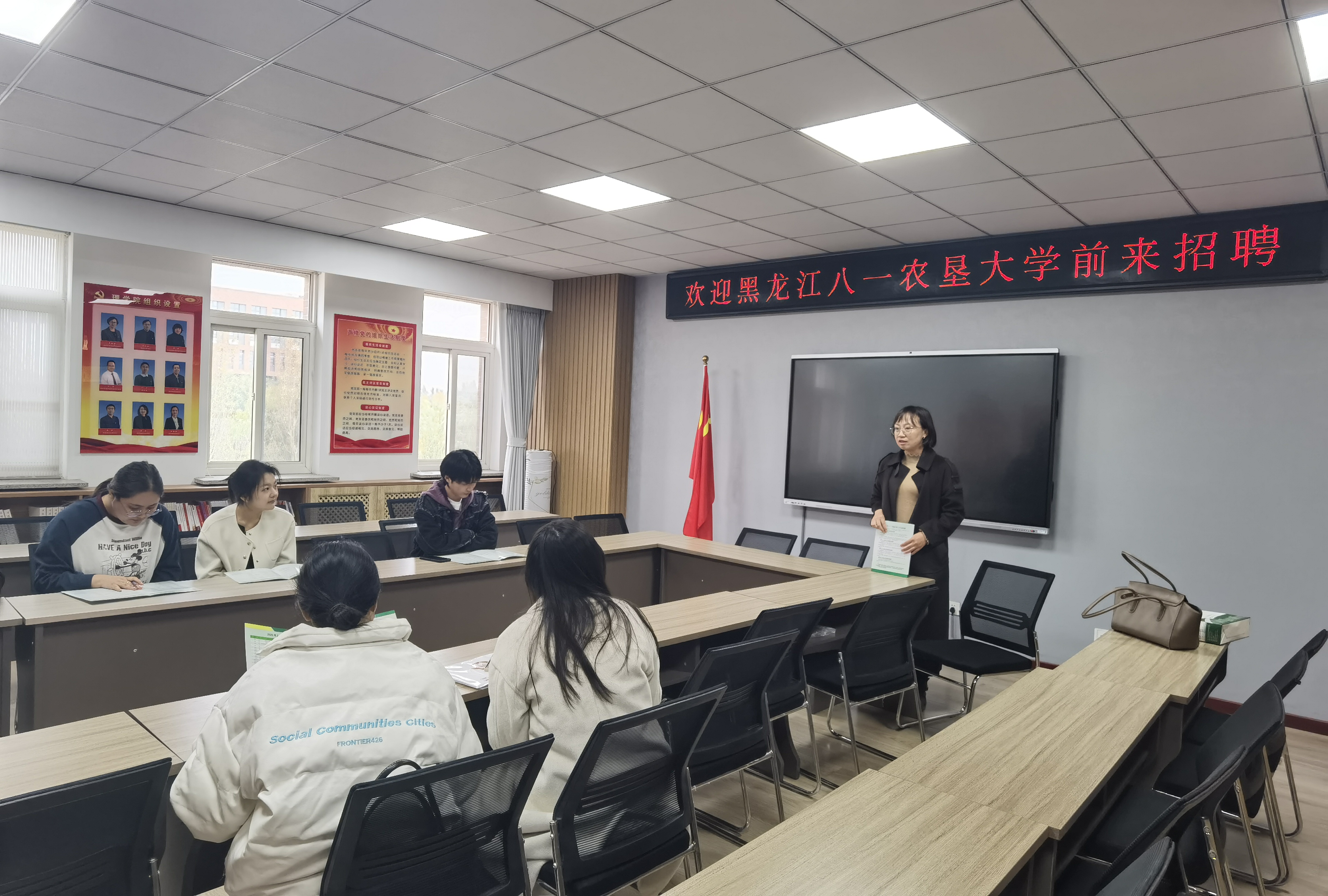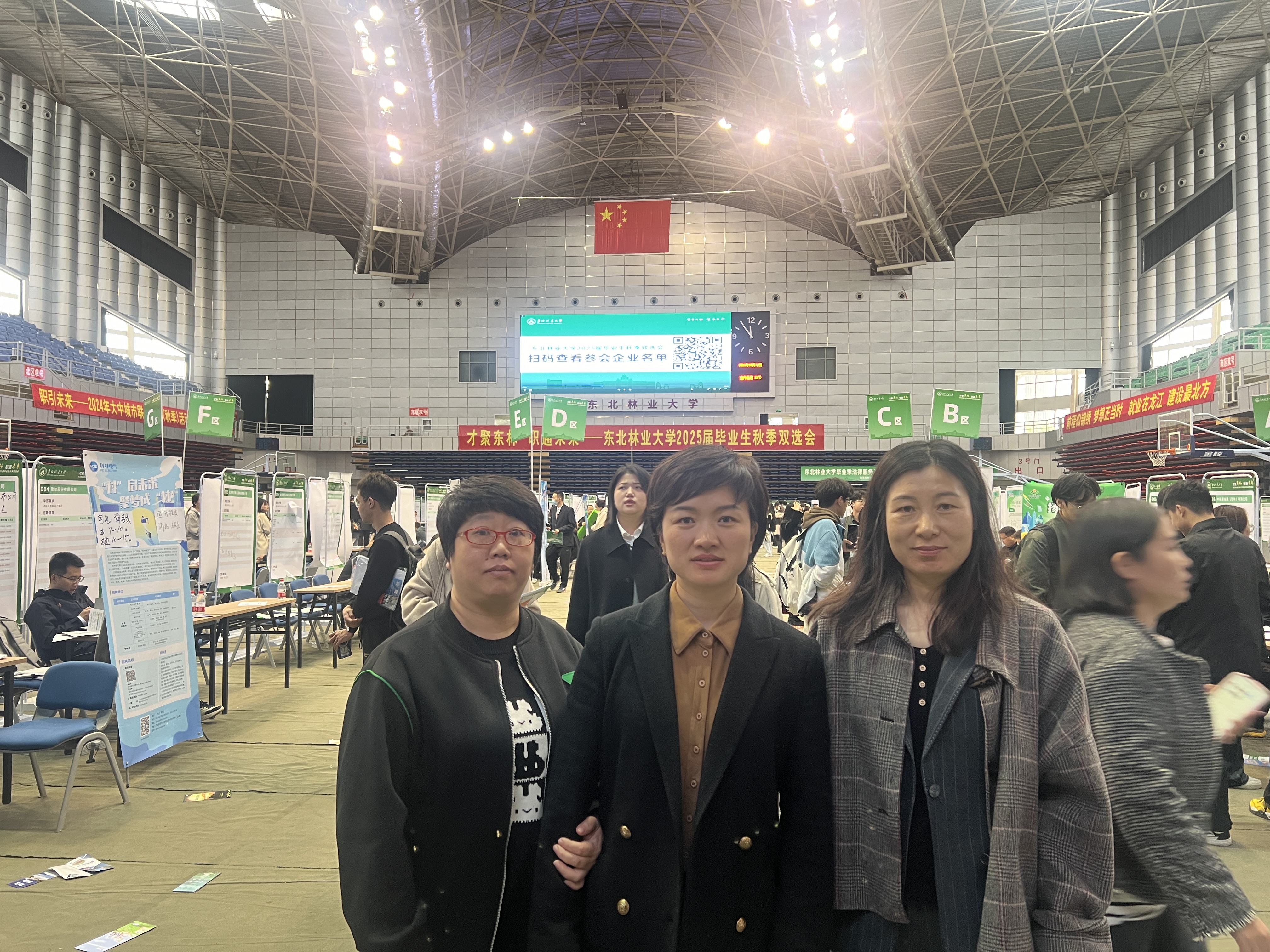 刘丽、张欣艳、汪红艳在东北林业大学毕业生双选会宣讲